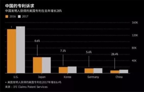 美國商業(yè)專利數據庫(IFIClaims)發(fā)布的最新報告顯示,不到10年時間里,中國企業(yè)在美國獲得專利數量已增至此前近10倍;特別是2017年較2016年增長28%,中國首次成為前五大美國專利獲得國。