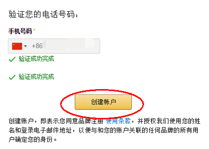 第5步:手機(jī)號(hào)碼驗(yàn)證通過(guò)后,點(diǎn)擊“創(chuàng)建賬戶(hù)”,即可進(jìn)入“注冊(cè)新品牌”界面;