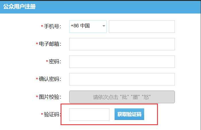 8、點(diǎn)擊獲取驗(yàn)證碼,輸入手機(jī)收到的驗(yàn)證碼:
