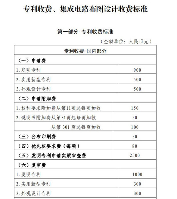 詳細的繳費項目及金額請參見《國家知識產(chǎn)權(quán)局收費公示》。
