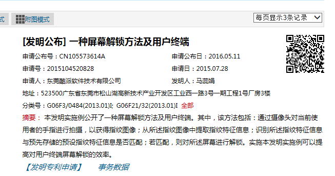 4、輸入查詢內(nèi)容出現(xiàn)。可以在其左下角上有標(biāo)明“發(fā)明專利申請”