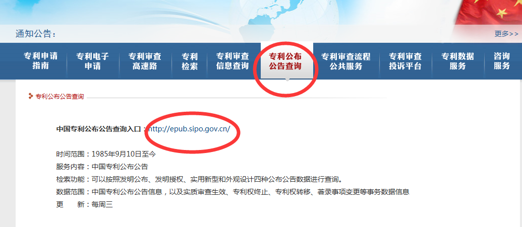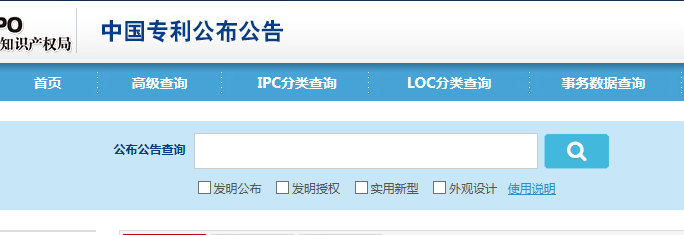 2、進入跳轉(zhuǎn)頁面,點擊欄目“專利公布公告查詢”出現(xiàn)網(wǎng)址,點擊進入。